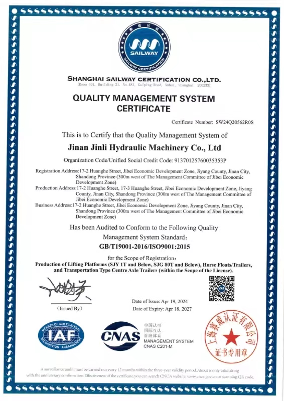 總之,9001質(zhì)量認(rèn)證證書的獲得是對(duì)濟(jì)南金力液壓機(jī)械有限公司過去工作的肯定,也是對(duì)未來發(fā)展的信心。希望公司能夠在這個(gè)基礎(chǔ)上不斷提升自身的管理水平和產(chǎn)品質(zhì)量,為客戶提供更的產(chǎn)品和服務(wù)。